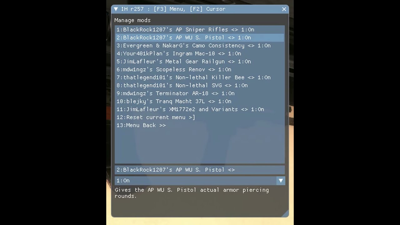 Continue readingdouble_arrowI’m making an Infinite Heaven addon that expands modding capabilities for MGSV. Taking advantage of IH’s module system, more changes can be made to in-game lua files through a single lua file. Mods that once conflicted with each other can be installed.
